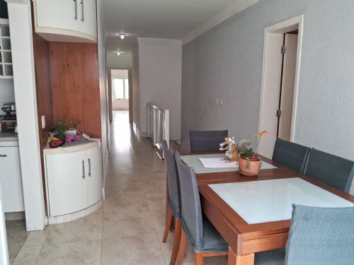 TRÊS SUÍTES, SENDO UMA SUÍTE MASTER COM CLOSET, OUTRA SUÍTE COM CLOSET E ARMÁRIO EMBUTIDO E OUTRA COM ARMÁRIO EMBUTIDO, ESCRITÓRIO COM BANHEIRO, SALA DE ESTAR PARA TRÊS AMBIENTES, SALA DE JANTAR, LAVABO, COPA COZINHA PLANEJADA COM DUAS PIAS, DISPENSA, DORMITÓRIO DE EMPREGADA COM ARMÁRIOS EMBUTIDOS E BANHEIRO, LAVANDERIA COM ARMÁRIOS EMBUTIDOS E DOIS TANQUES, QUINTAL LATERAL, PISCINA COM CASCATA E SISTEMA DE AQUECIMENTO, DUCHA, CHURRASQUEIRA COM PIA. ARQUITETURA MODERNA, SUPER FUNCIONAL, EM RUA ARBORIZADA.