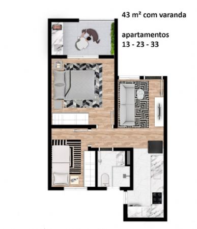 33 43ms2 2 dormitórios - sacada - zero vaga R$ 383.000,00